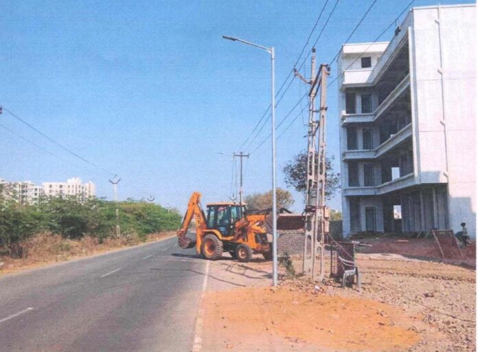 મોરબી મહાનગર પાલિકા દ્વારા શહેરના વિવિધ માર્ગો પર સ્ટ્રીટ લાઇટ પોલ સ્થાપવાના કાર્યો તબક્કાવાર હાથ ધરવામાં આવી રહ્યા છે. પીપળી રોડ પર સ્ટ્રીટ લાઇટ પોલ સ્થાપનાનું કામ પ્રગતિ હેઠળ છે, જેમાં આશરે 146 પોલ સ્થાપિત કરવામાં આવશે.