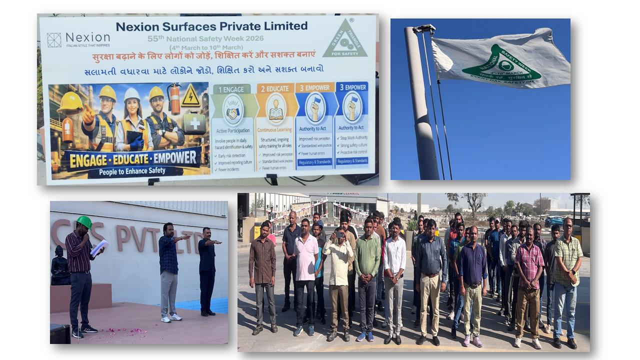 મોરબી નજીક આવેલી નેક્સિયન સર્ફેસેસ પ્રાઇવેટ લિમિટેડ ખાતે 55મું રાષ્ટ્રીય સલામતી સપ્તાહ ઉત્સાહભેર ઉજવવામાં આવ્યું. આ કાર્યક્રમનો મુખ્ય હેતુ કર્મચારીઓમાં સલામતી પ્રત્યે જાગૃતિ લાવવાનો અને કાર્યસ્થળને વધુ સુરક્ષિત બનાવવાનો હતો.