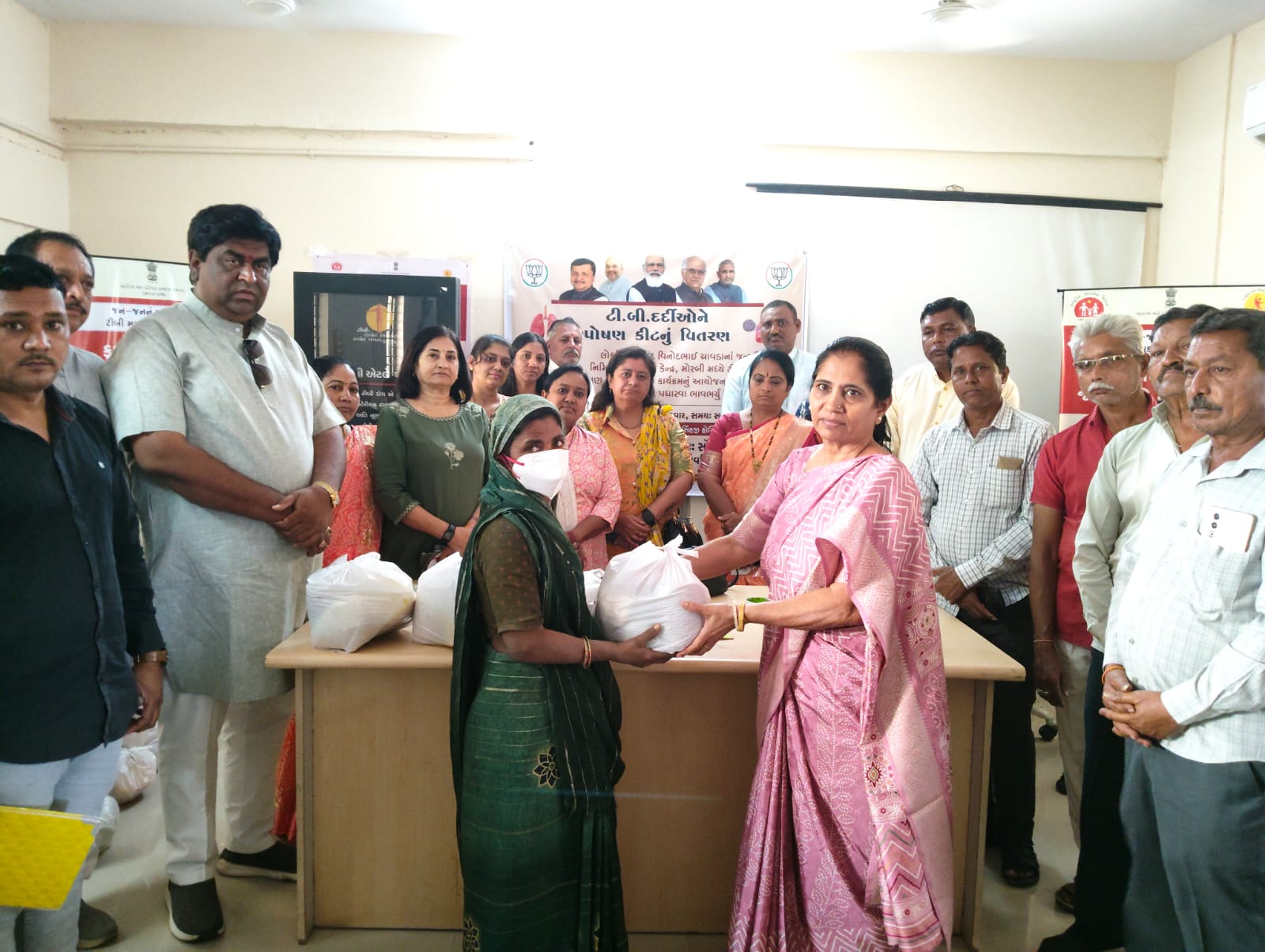 સાંસદ વિનોદભાઈ ચાવડા દ્વારા આગામી છ માસ સુધી મોરબી શહેરમાં વસવાટ કરતા ટીબીના દર્દીઓને પોષણ કીટ આપવાની જાહેરાત કરી છે જેના ભાગરૂપે મોરબી ભાજપ પરિવાર દ્વારા આજરોજ 500 થી વધુ ટીબીના દર્દીઓને પોષણ કીટનું વિતરણ કર્યું આ પ્રસંગે મોરબી જિલ્લા પંચાયત પ્રમુખ શ્રીમતી હંસાબેન પારધી તેમજ જિલ્લા ભાજપ મહિલા મોરચો અને ભારતીય જનતા પાર્ટીના આગેવાનો અને કાર્યકર્તાઓ મોટી સંખ્યામાં ઉપસ્થિત રહ્યા હતા.