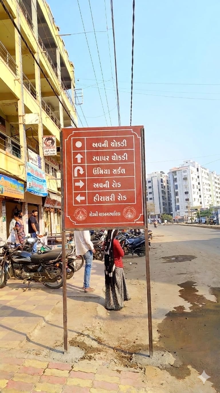 મોરબી મહાનગરપાલિકા હદ વિસ્તારમાં શહેરની ટ્રાફિક વ્યવસ્થાને વધુ સુવ્યવસ્થિત બનાવવા તેમજ નાગરિકો અને શહેરમાં આગમન કરતા મુલાકાતીઓને વિવિધ મહત્વપૂર્ણ સ્થળો સુધી સરળતાથી માર્ગદર્શન ઉપલબ્ધ થાય તે હેતુસર દિશા નિર્દેશક બોર્ડ સ્થાપિત કરવાની કામગીરી હાથ ધરવામાં આવી છે. આ કામગીરી અંતર્ગત સેન્ડસ્ટોન પથ્થરમાં કોતરણીથી તૈયાર કરેલ દિશા નિર્દેશક બોર્ડ શહેરના વિવિધ વિસ્તારોમાં તબક્કાવાર સ્થાપિત કરવામાં આવી રહ્યા છે.