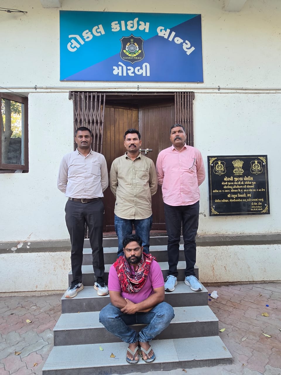 Homeગુજરાતમોરબીમોરબી; પશુ સંરક્ષણ અધિનિયમના ગુનામાં નાસતા ફરતા આરોપીને એલસીબી તથા પેરોલ ફર્લો... મોરબી મોરબી; પશુ સંરક્ષણ અધિનિયમના ગુનામાં નાસતા ફરતા આરોપીને એલસીબી તથા પેરોલ ફર્લો સ્કવોડે ઝડપી પાડયો By morbisahyognews March 7, 2026 103 Share FacebookXPinterestWhatsApp મોરબી સીટી એ ડિવિઝન પોલીસ સ્ટેશનના પશુ સંરક્ષણ અધિનિયમના ગુનામાં નાસતા ફરતા આરોપીને મોરબી એલ.સી.બી. /પેરોલ ફર્લો સ્કોડની ટીમે ઝડપી પાડયો છે. મોરબી એલ.સી.બી./પેરોલ ફર્લો સ્કવોડના મોરબીના સ્ટાફને ખાનગીરાહે બાતમી મળેલ કે, મોરબી સીટી એ ડિવિઝન પોલીસ સ્ટેશનમાં બી.એન.એસ.ની. કલમ ૨૯૮.૫૪ તથા પશુ સંરક્ષણ અધિનિયમની કલમ ૬(૧),૮(૪) મુજબના ગુનામાં નાસતો ફરતો આરોપી સીકંદર ગફાર સંધવાણી રહે.માળીયા મીંયાણા વાડાવિસ્તાર જુના રેલ્વેસ્ટેશન પાસે તા.માળીયામીંયાણા જી.મોરબી વાળો હાલે માળીયા મીંયાણા વાગડીયા ઝાપા પાસે રોડ ઉપર આવેલ હોવાની ચોકકસ બાતમી મળતા જે આધારે તપાસ કરતા પશુ સંરક્ષણ અધિનિયમના ગુનામાં નાસતો ફરતો આરોપી મળી આવતા આરોપીને હસ્તગત કરી આગળની કાર્યવાહી અર્થે મોરબી સીટી એ ડિવિઝન પોલીસ સ્ટેશનને સોપી આપેલ છે. Share FacebookXPinterestWhatsApp RELATED ARTICLES મોરબી વાંકાનેર બાઉન્ટ્રી ટોલનાકા પાસે અજાણ્યા પુરુષની લાશ મળી આવી; વાલી-વારસની શોધખોળ શરૂ April 20, 2026 મોરબી આગામી 24 એપ્રિલે પુષ્ય નક્ષત્રે મોરબીમાં નિઃશુલ્ક સુવર્ણપ્રાશન કેમ્પ યોજાશે April 20, 2026 મોરબી વાંકાનેરમાં પચ્ચીસવારીયા પાસે એક્ટિવાની ડેકીમાંથી વિદેશી દારૂ ઝડપાયો, એકની ધરપકડ April 20, 2026 Stay Connected16,985FansLike2,458FollowersFollow61,453SubscribersSubscribe Most Popular વાંકાનેર બાઉન્ટ્રી ટોલનાકા પાસે અજાણ્યા પુરુષની લાશ મળી આવી; વાલી-વારસની શોધખોળ શરૂ morbisahyognews - April 20, 2026 આગામી 24 એપ્રિલે પુષ્ય નક્ષત્રે મોરબીમાં નિઃશુલ્ક સુવર્ણપ્રાશન કેમ્પ યોજાશે morbisahyognews - April 20, 2026 વાંકાનેરમાં પચ્ચીસવારીયા પાસે એક્ટિવાની ડેકીમાંથી વિદેશી દારૂ ઝડપાયો, એકની ધરપકડ morbisahyognews - April 20, 2026 મોરબીમાં સીટી મોલમાં IPL મેચ પર ચાલતા ક્રિકેટ સટ્ટાનો પર્દાફાશ: 5.26 લાખના મુદ્દામાલ સાથે 4 શખ્સો ઝડપાયા morbisahyognews - April 20, 2026 મોરબી-વાંકાનેર ને.હા. રોડ પર ઓરડીમાંથી 1.95 લાખનો વિદેશી દારૂ/બીયરનો જથ્થો ઝડપાયો morbisahyognews - April 20, 2026