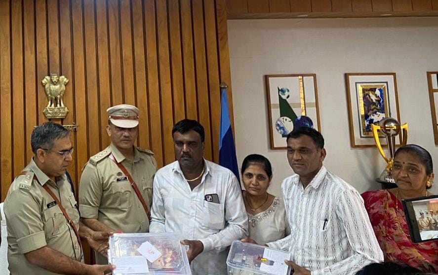 મોરબી: “તેરા તુજકો અર્પણ કાર્યક્રમ” અંતર્ગત જિલ્લા પોલીસ અધિક્ષકના હસ્તે ફરીયાદીને ચોરી થયેલા દાગીના અને મોબાઇલ મળી કુલ રૂપીયા- ૨૭,૪૨,૩૯૨/- નો મુદામાલ પરત સોપવામાં આવેલ છે.