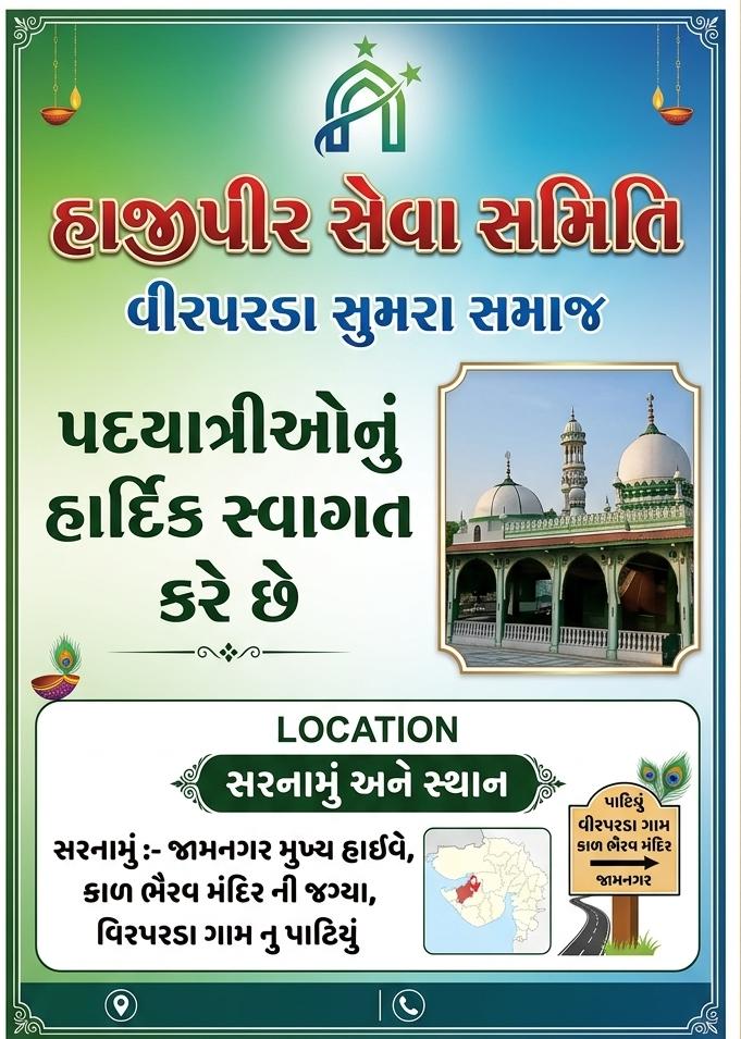 વિરપરડા સુમરા પરિવાર દ્વારા હાજીપીર જતા પદયાત્રીઓ માટે સેવા કેમ્પનું આયોજન