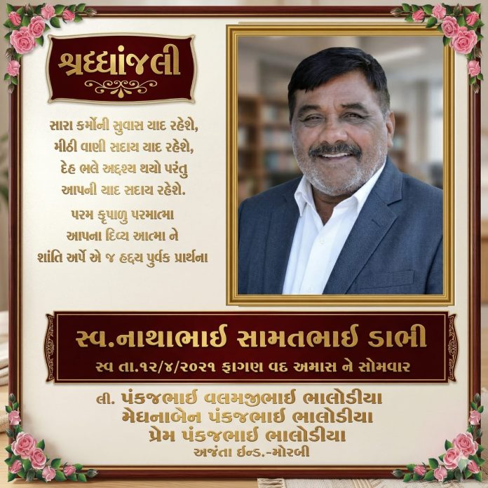 સ્વ. નાથાભાઈ ડાભી રાજકોટ જિલ્લા પંચાયતના મંત્રી તરીકે સેવા આપી ચૂક્યા હતા તેમજ મોરબી તાલુકાના પ્રમુખ પદ પર રહી લોકહિતના અનેક કાર્યો કર્યા હતા. તેમના સેવાભાવી જીવનને યાદ કરતાં આ આયોજન કરવામાં આવ્યું હતું. આ પ્રસંગે હાજર લોકોએ સ્વ. નાથાભાઈ ડાભીને ભાવભીની શ્રદ્ધાંજલિ અર્પી હતી.