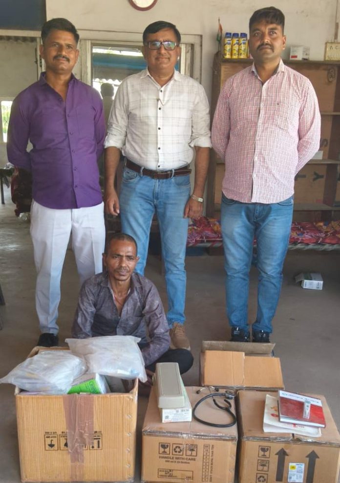 મોરબી એસ.ઓ.જી. સ્ટાફને બાતમી મળેલ કે, વાંકાનેર તાલુકાના રાતાવિરડા રોડ પર આવેલ રોસા સિરામીક સામે દવાખાનામાં એક ઇસમ સુરેન્દ્રકુમાર રામનરેશ ગૃપ્તા નામનો વ્યક્તિ ડીગ્રીવગર ડોકટરી પ્રેકટીસ કરતા હોવાનુ તથા દવાખાનામાં એલોપેથીક દવાનો જથ્થો રાખી બિમાર દર્દીઓની સારવાર કરતા હોવાની ચોક્કસ બાતમી મળતા તુરત જ તબીબી અધિકારી PHC ઢુવાને બોલાવી સાથે રાખી બાતમીવાળી જગ્યાએ રેઇડ કરતા સુરેન્દ્રકુમાર રામનરેશ ગુપ્તા, રહે. હાલ રાતવિરડા ગામ, રોસા સિરામીક સામે, દુકાનમાં તા.વાંકાનેરવાળો અલગ અલગ કંપનીની દવાઓ જેમા ટેબલેટ, સીરપ, ક્રીમ, ઇન્જેક્શનો, સ્ફીગ્મો મેનોમીટર, સ્ટેથોસ્કોપ, વિગેરે મળી કુલ કિ.રૂ.૪૩,૧૦૦/- તથા રોડકા રૂપીયા ૨,૦૦૦/- વિગેરે મળી કુલ કિ.રૂ.૪૫,૧૦૦/-ના મુદામાલ સાથે મળી આવતા આરોપી વિરુદ્ધ બી.એન.એસ.- ૨૦૨૩ ની કલમ-૧૨૫ તથા ગુજરાત મેડીકલ પ્રેકટીશનર એકટ ૩૦, ૩૩ મુજબની કાર્યવાહી કરી વાંકાનેર તાલુકા પો.સ્ટે. ગુન્હો રજીસ્ટર કરાવેલ છે. આગળની કાર્યવાહી વાંકાનેર તાલુકા પોલીસ દ્વારા હાથ ધરેલ છે.